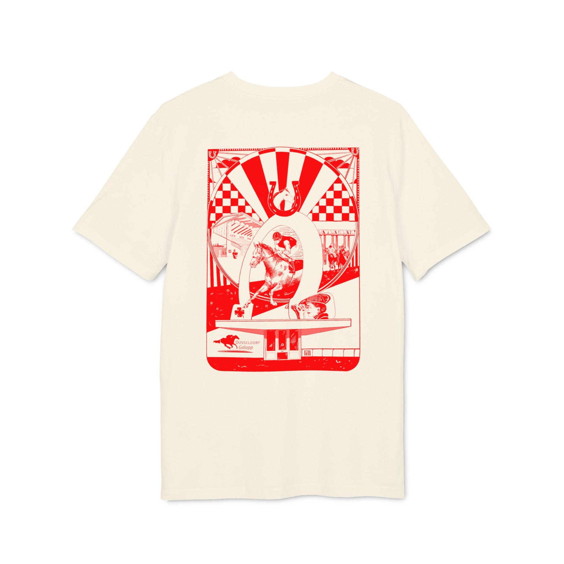 Das Shirt feiert die Düsseldorfer Rennbahn mit einem Design, nur solange der Vorrat reicht.